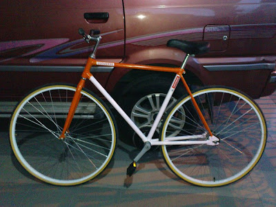and now some finer stuff: one of the better build up bikes in town here - I like the carbon rim, but please remove the velocity sticker from the new shiny wheel - everbody knows the secret I guess - since I own the same rear wheel in same colour combination for some time I take this as a personal dispute! haha (spotted at university)
